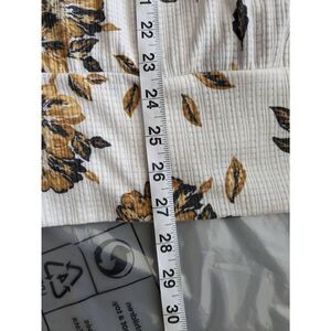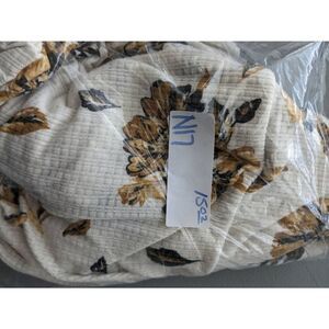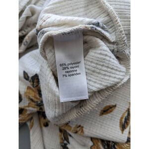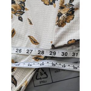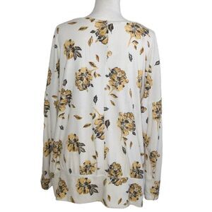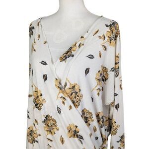 Maurices Blouse Long sleeve Floral flowers and leaves print Size 2 White Yellow V neck Cowl waffle knit Polyester blend Gently used condition no flaws measured as flat lay in inches chest 29 inches length 27.5