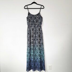 Maurice's Blue & Black Paisley Gradient Ombre Boho Maxi Dress