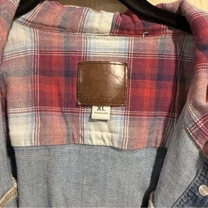 Maurice’s Blue Denim Jacket with Red Plaid Lining- XL