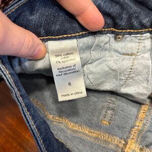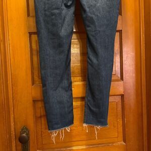 Great condition cotton and spandex blend medium wash distressed skinny jeans with a raw hem from Maurices. Women’s size 6 regular but waist is a 30” measurement. Measurements taken flat are approximately:
