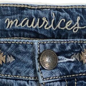 Maurice's blue embroidered shorts offer a stylish blend of casual and decorative flair ideal for summer. Featuring stretch denim for comfort, these cutoff shorts have a 3-inch inseam and are crafted from a cotton blend for durability.