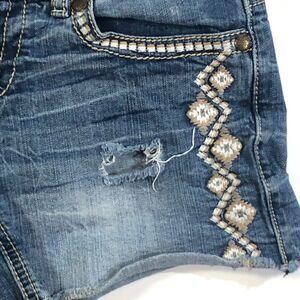 Maurice's Blue Embroidered Stretch Denim Cutoff Shorts
