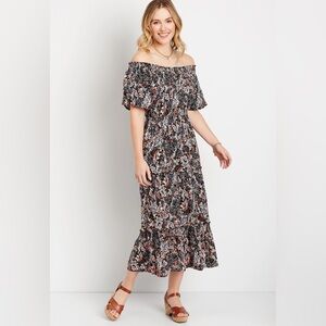 Maurices Blue Floral Smocked Neck Midi Dress, size Medium. Worn once, like new.