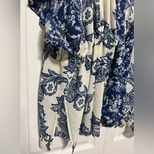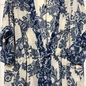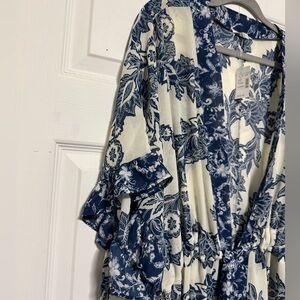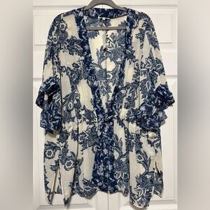 Maurices Blue & White Floral Flutter Sleeve Kimono Sz XL