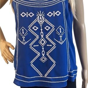 Maurices Blue and White Spaghetti Srap/Racer Back Aztec Print Dressy Tank/Cami