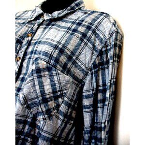 Maurice's Blue&White Plaid Embellished,L/S Shirt Size 2X