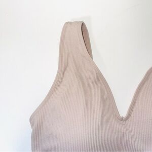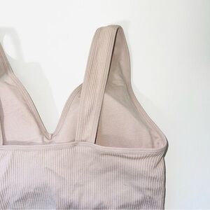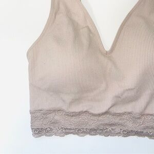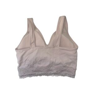 Maurices light pink ribbed seamless bralette. In excellent condition! Plunge V neckline. Pullover style. Wide straps. Lace trimming. Lightly padded. Unlined. Ribbed material. Light pink color. Size medium.