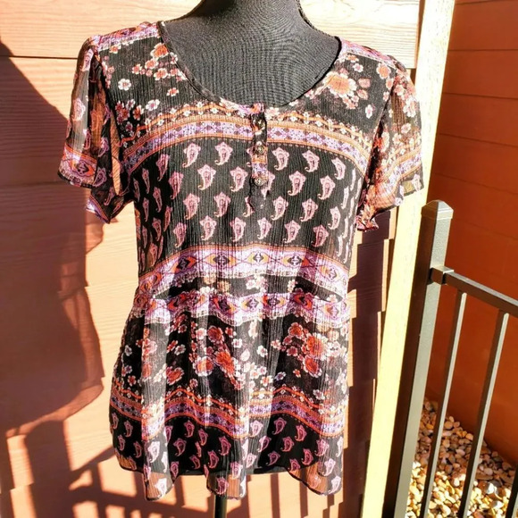 Maurices Bohemian Short Sleeve Peplum Top Women's Size Small EUC