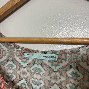 Maurices Boho Coral/Aqua Short Sleeve Sheer Blouse Size L