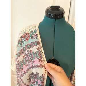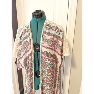 Maurices Boho Floral Lace Open Front Kimono Wrap Cover Up Duster