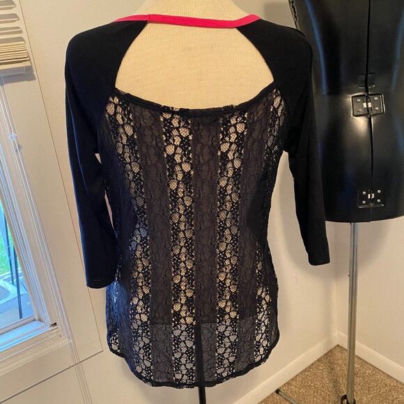 Maurices Lace Back 3/4 Sleeve V-neck T-shirt Womens Top