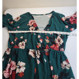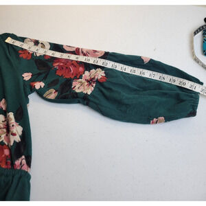 Maurices Green Floral V-Neck Long Sleeve Babydoll Mini Dress Women's Size XL