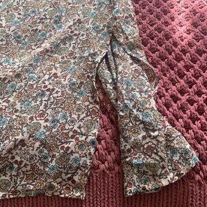 Floral boho ruana from Maurices. Detailed with so many different colors and floral patterns. 9.5in side slits. Very lightweight and flowy with minimal stretch. Can easily be dressed up or down. I love all the different colors because you can easily match different pieces with it! Bust: 24 inches. Waist: 25 inches. Length: 36 inches. Sleeve length: 15 inches. In great condition!