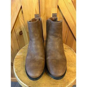 Maurices Boots Womens 7M Abigail Ankle Chelsea Booties Brown Faux Leather 1.75” heel