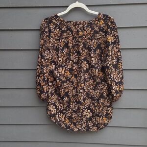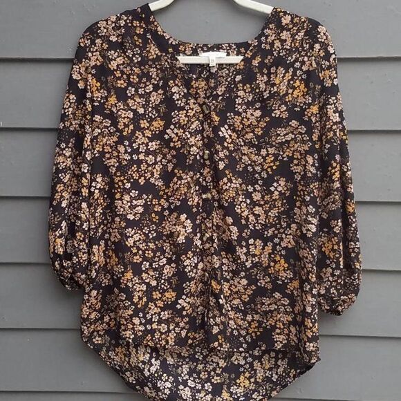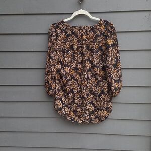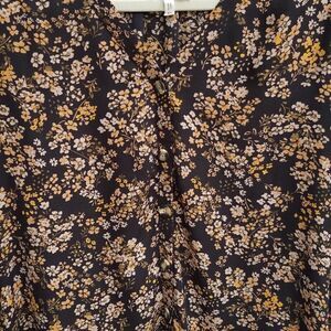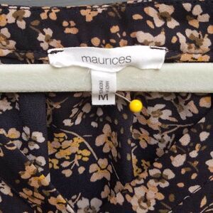 Maurices Brown Black Floral Button Down Peasant Top Medium
