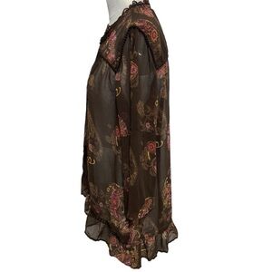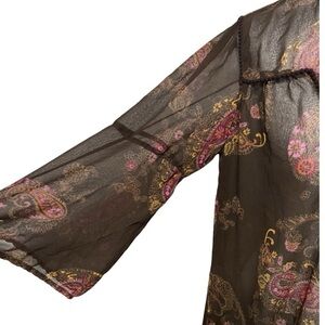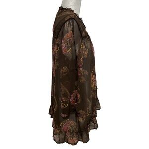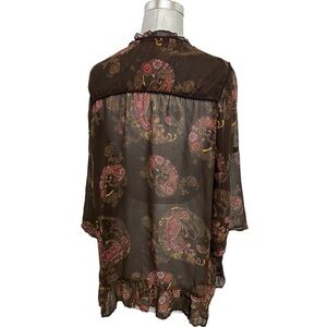 Maurice’s Brown Floral Paisley 3/4 Sleeve Sheer Tunic V-Neck with Tassel Tie XL