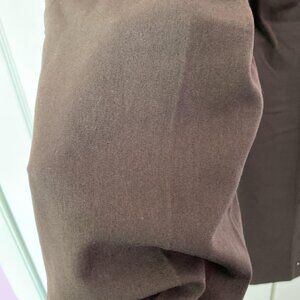 Maurice’s brown trouser. Slim through hips and thigh and looser through calf style (10 year old style, so sizing may vary from current Maurice’s apparel). False pockets. Loose white thread on inside of black waistband from previous tag that could be removed with seam ripper. #workwear #worktrouser #iampolishedmaurices