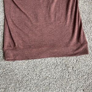 This cozy sweater is a heather burgundy color and has a cowl neck line.