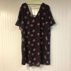 Maurices Burgundy Floral V-Neck Dress Size 2 2X Short Sleeve NWT