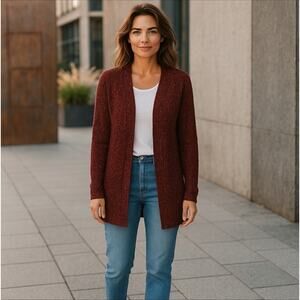 Maurices Burgundy Open Front Knit Cardigan Sweater Size S