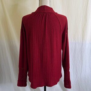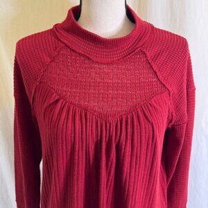 Maurice’s Burgundy Red Mock Neck Long Sleeve Top Size L Exposed Rough Seams