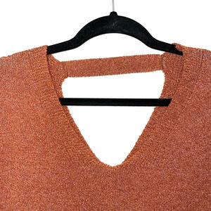 Maurices burnt orange oversized knit pullover sweater. In excellent condition! Deep V neckline. Long sleeves. Exposed seams on the front. Open back. Oversized fit. Soft plush knit material. Burnt orange color. Size xsmall.