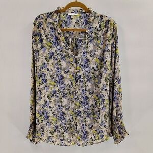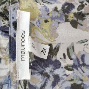 Maurices Button Up Blouse Size 2X Long Sleeve Gray Blue Green Peasant Top