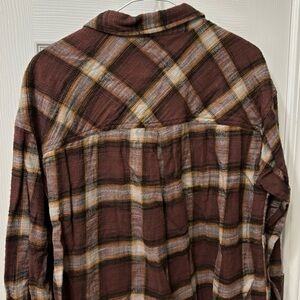 Maurices Cabin Plaid Brown Oversized Flannel Button Down Shirt Womens Size Large. Good used condition