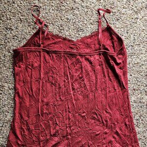 Pre-crinkled cami with metallic silver and lace details around the hem and neckline. Adjustable straps. Only worn once or twice, good for layering. Size medium.