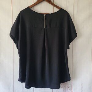 Maurices Cap Sleeve Blouse, Relaxed Fit Top, Women’s XL, Black, Button Sleeve and Zipper Back Detail, Business/Casual/Dress Shirt EUC