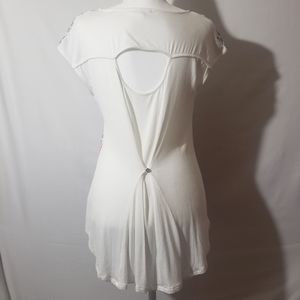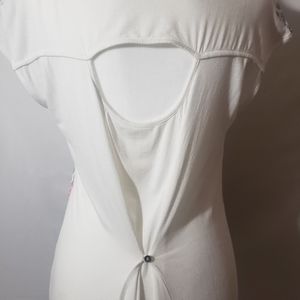 Solid white back, stretchy soft fabric with keyhole and button gathered fabric