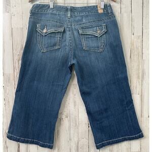 Maurices Capri Jeans Medium Blue Denim Low Rise Button Pockets Grunge Preppy Sz9