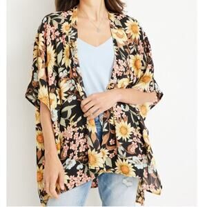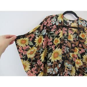 Maurices Cardigan Kimono Women One Size Sunflower Floral Chiffon Open Front Drap