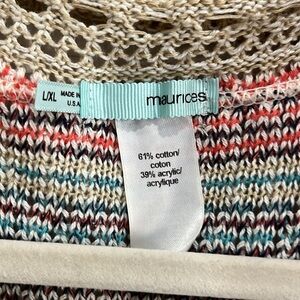 Maurices Cardigan Vest Womens L/XL MED Sweater Multicolor Striped Open Front