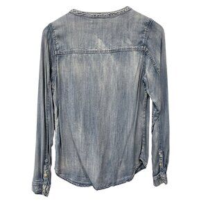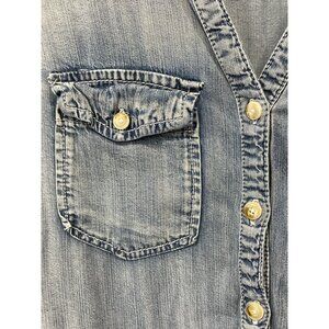 Maurices Chambray Shirt Size Small Button Front Long Sleeve Blue Denim Classic
