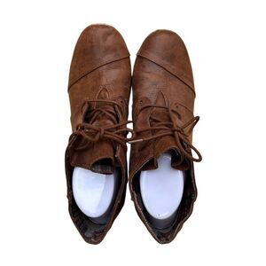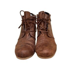 Maurices Cheri Lace Up Wedge Heel Ankle Bootie Brown Distressed Cognac Size 11