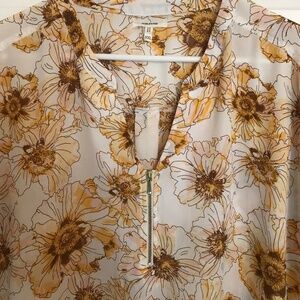 Maurices Chiffon V-Neck Cap Sleeve Floral Top Size XXL Yellow Brown