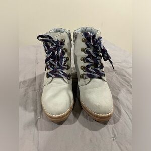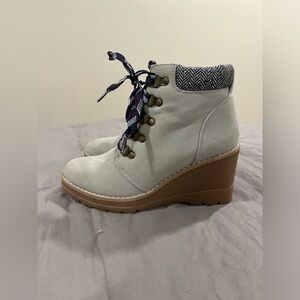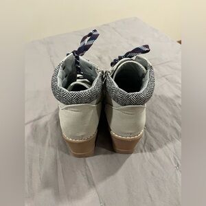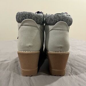Maurices Claire Gray Knit Collar Lace Up Wedge womens size 7.5. Previously owned with a couple of flaws that can be seen in pictures, otherwise in excellent condition!
