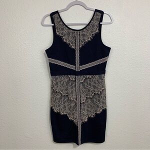 Maurice’s Classic Navy Sheath Dress With Lace Overlay Size M