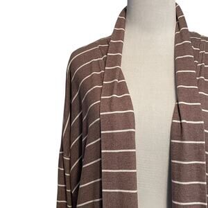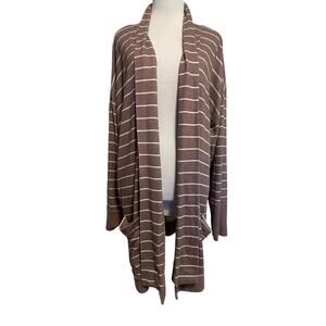 Maurices Cocoa Striped Cardigan Womens Size 2X Open Knit Pocket Topper Layer