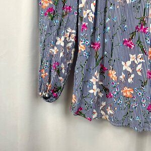 Maurices Cold Shoulder Long Sleeve Smocked Blouse Blue/Multi Women’s Size Small