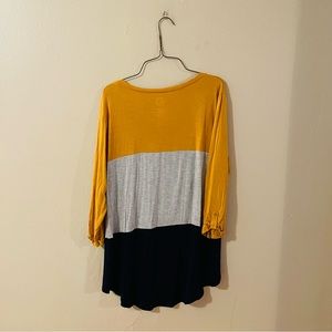 Good used condition. Color blocked style knit top. Striped portion and cuffed style sleeves with button.