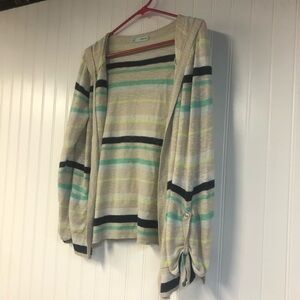 Maurices Colorful Striped Beige Cardigan Sweater with Hood XL Lightweight