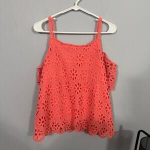 Maurices Coral Orange Cold Shoulder Top Eyelet Floral Design Women's Size Medium