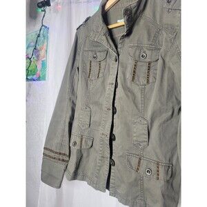Maurices Cotton safari jacket with embroidered details womens large olive green