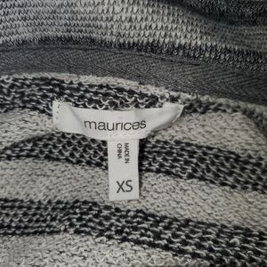 Maurices open or close front, cowl neck Cardigan with Asymmetrical buttons, great for layering in size Xs pit to pit measures 17" but stretches to 21"