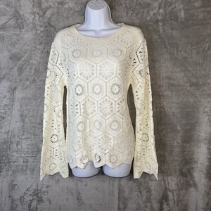 Maurices Cream Crochet Knit Sweater Small Boho Hippie Festival Cottagecore Top