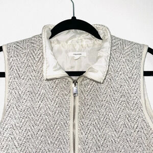 Maurices Cream & Gray Chevron Pocket Full Tweed Zip Vest Medium Women’s