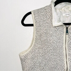 Maurices cream & gray chevron tweed vest. In excellent condition! Collared. Full zip front closure. Two front pockets. Sleeveless. Fully lined. Light gray & cream chevron print tweed material. Size medium.
