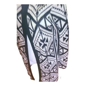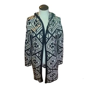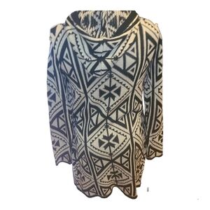Pre-Owned but In great shape. Cream color hooded cardigan with black Aztec Designs all over. Long Sleeve.